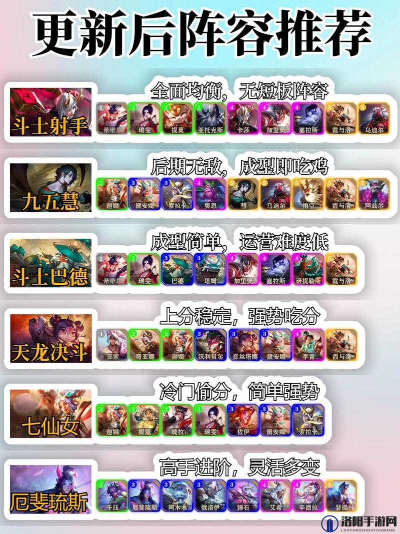 摘要:最新S7云頂之弈陣容推薦,讓你輕松上分不是夢!我們?yōu)槟憔x了最新強勢的英雄組合,助你輕松戰(zhàn)勝對手。這些陣容經過實踐驗證,具有強大的戰(zhàn)斗力和協(xié)作能力。趕快嘗試,提升你的云頂之弈水平吧!