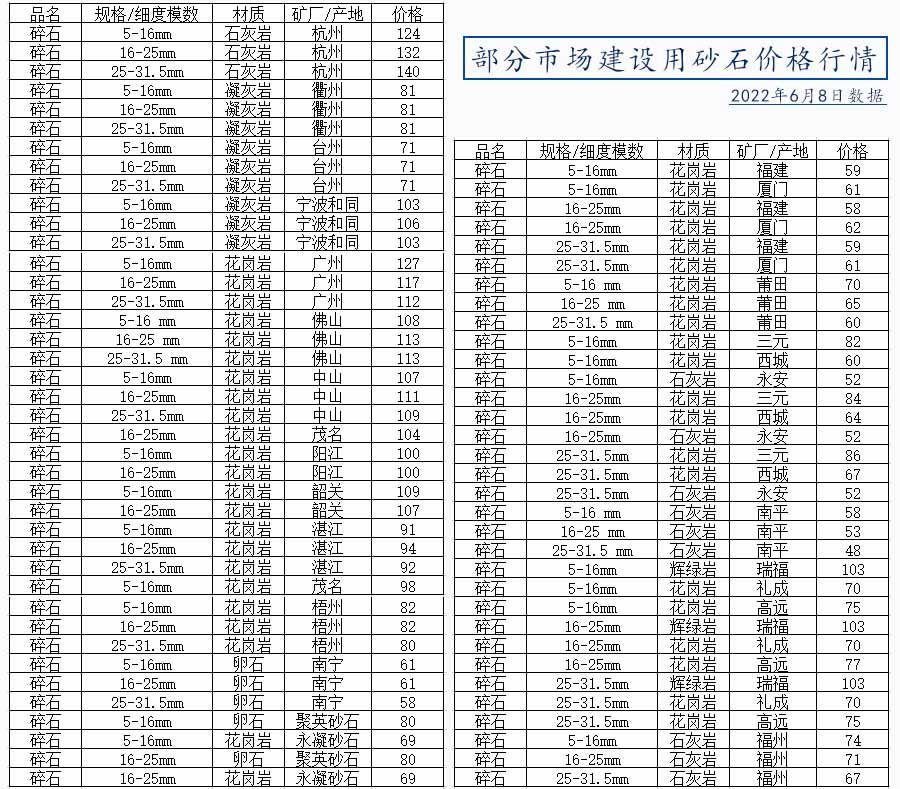 建筑砂石規(guī)格及價格指南