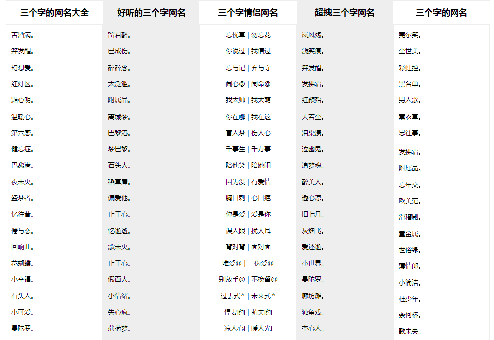 最新版男生三字網名推薦