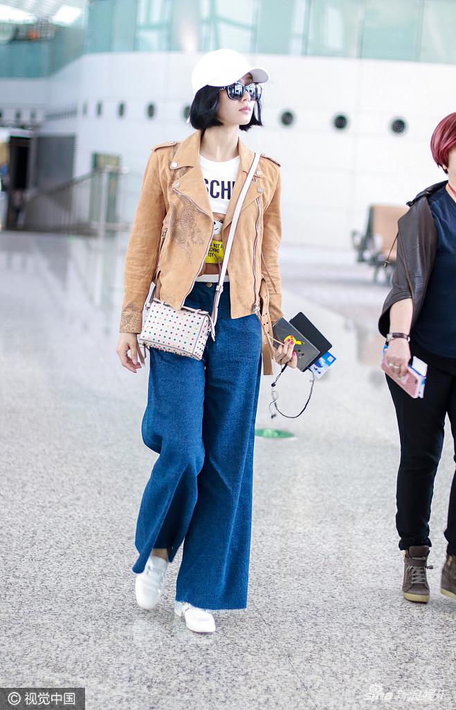 (圖片:明星在旅途中展現(xiàn)幽默元素,穿著闊腿褲充滿活力)